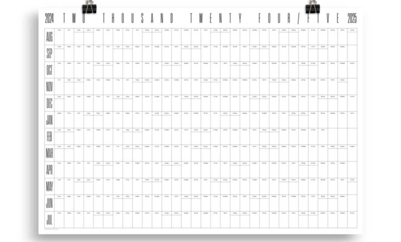 Keep track of your academic year 24/25 at a glance with this linear wall planner.